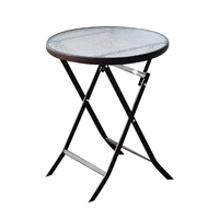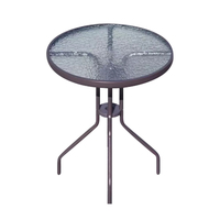 Mesa Redonda de Metal para Exteriores, Ligera y Portátil, de 60 cm de Diámetro, de Vidrio Templado, con Patrón de Ondas, Ensamblada